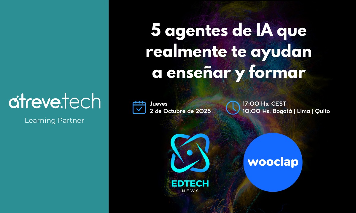 La enseñanza evoluciona y Wooclap da un paso adelante con el lanzamiento de sus nuevos Asistentes de IA. Estas innovadoras herramientas permiten a los docentes ahorrar tiempo en la preparación de actividades, generar preguntas y dinámicas interactivas en segundos, analizar retroalimentación en vivo y potenciar la participación estudiantil. En este webinar exclusivo descubrirás cómo funcionan los Asistentes de IA, qué retos resuelven en el aula y de qué manera transforman la interacción y la motivación en tus clases. Una oportunidad única para conocer en primicia la próxima revolución en innovación educativa. Registro gratuito en: https://agentes-de-ia.wooclap.com/?utm_source=social-media&utm_medium=social-media&utm_campaign=Agents+AI&utm_id=Agents-AI